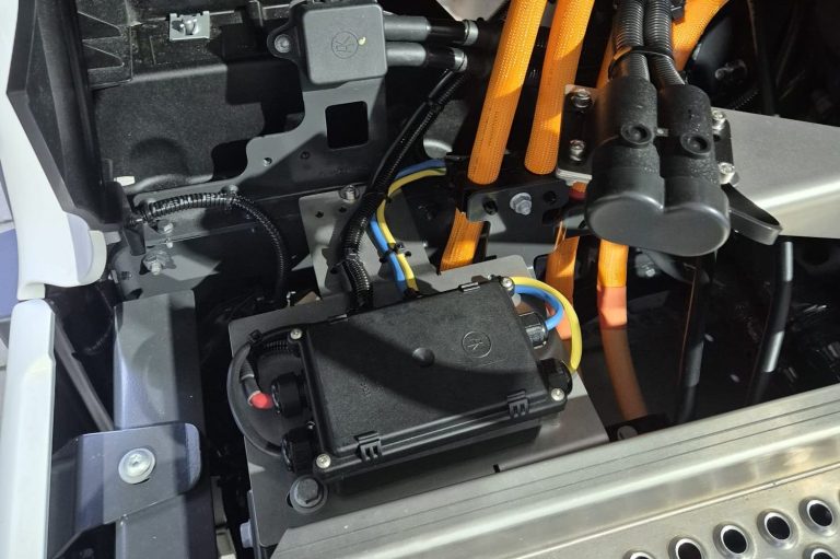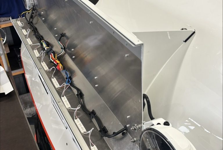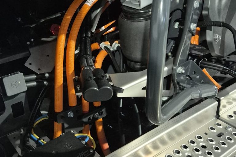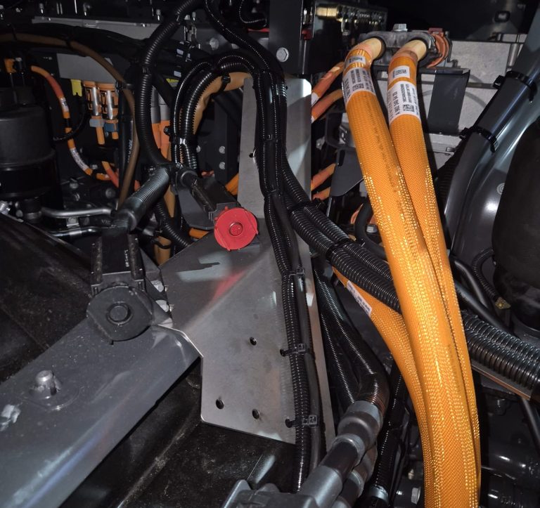 Elektra doos bev. en deels kabel management net achter linkse voorspatbord en treeplank achter cabine. Hierdoor heb je makkelijk toegang, bijv. voor relais of zekeringen rema stekker.